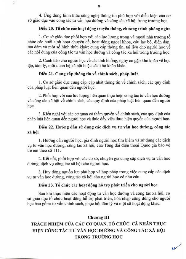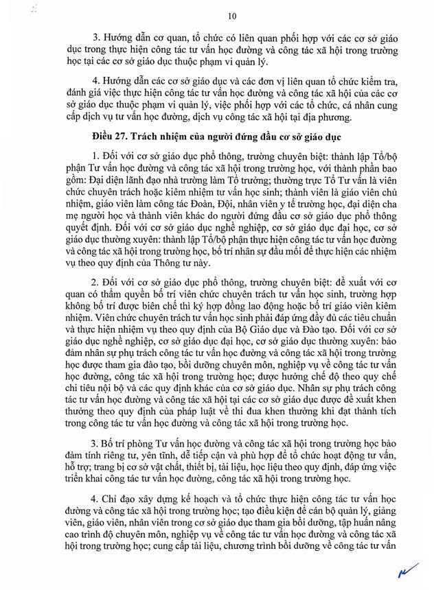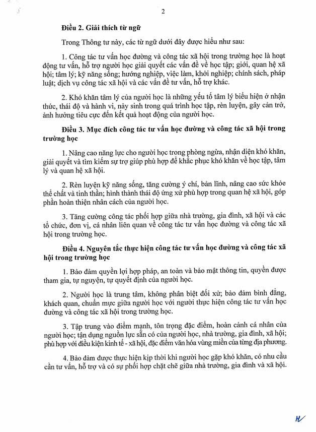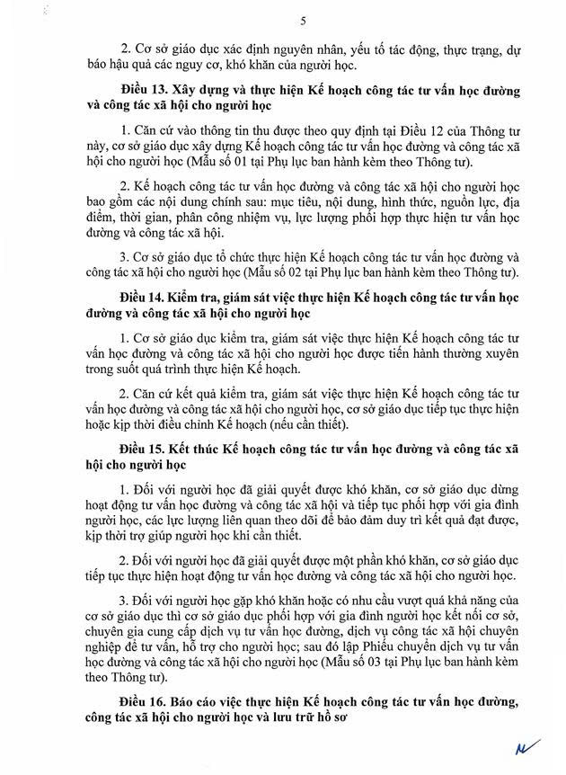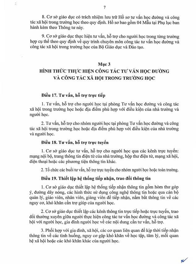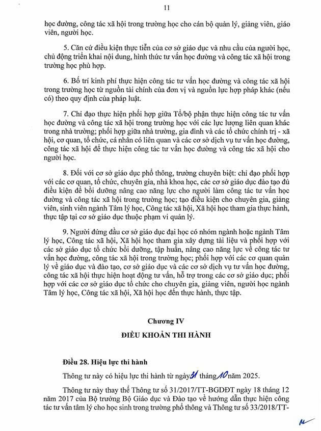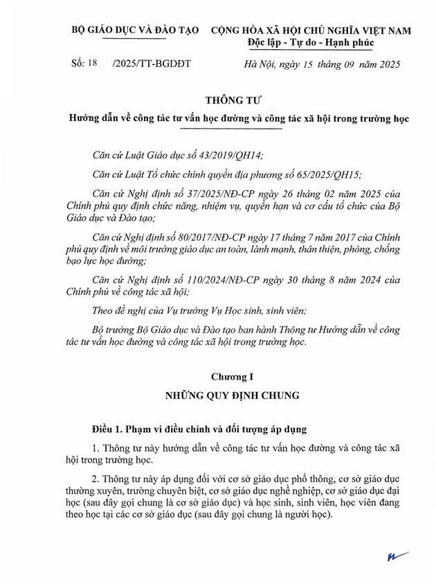 Thông tư số 18/2025/TT-BGDĐT của Bộ Giáo dục và Đào tạo: Hướng dẫn về công tác tư vấn học đường và công tác xã hội trong trường học